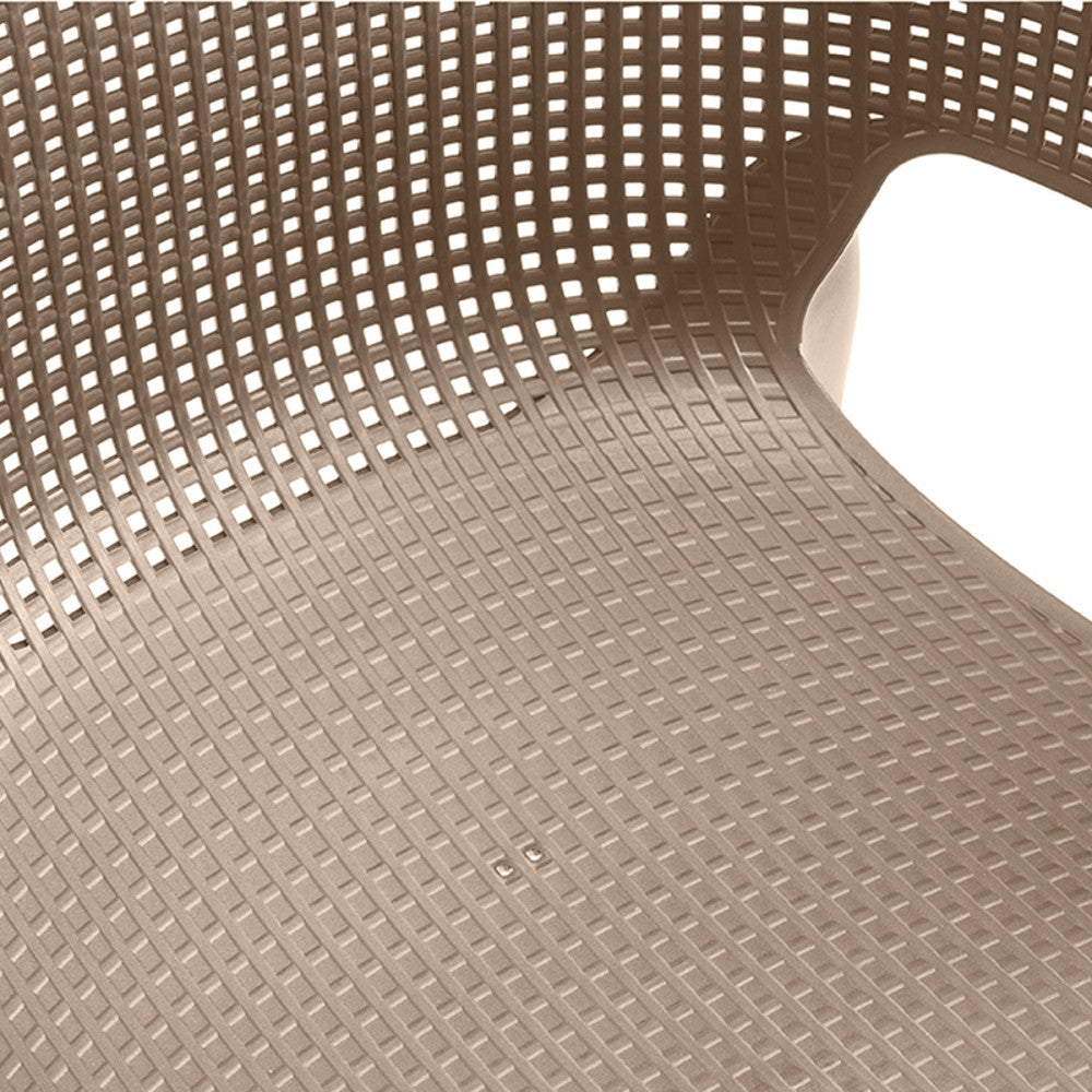 A Rovea kerti bútor garnitúrához párna is jár. Első pillantásra a termékről azt gondolnánk, hogy természetes rattanból készült, de valójában egy remek minőségű müanyagból állították elő amit úgy hívnak polyrattan. Ez a megtévesztő látvány az anyag textúrájának köszönhető, amely így alakul ki a gyártási folyamat során.