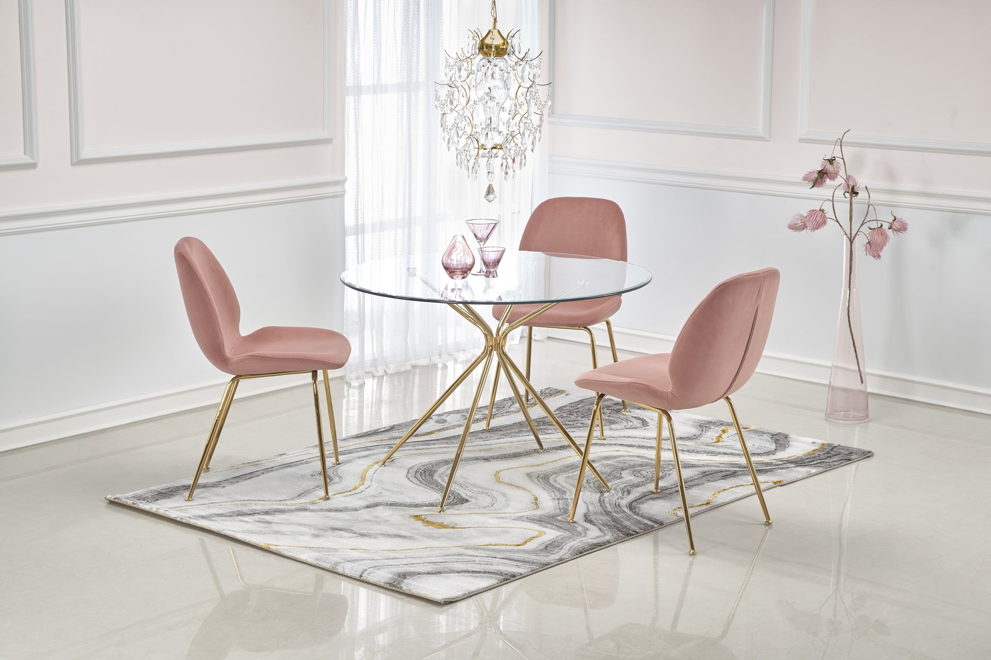 méretek: o110/74 cm, anyaga: üveg / krómacél, szín: felső - átlátszó, lábak - arany