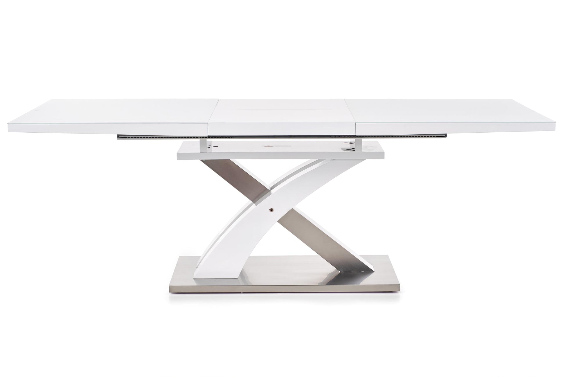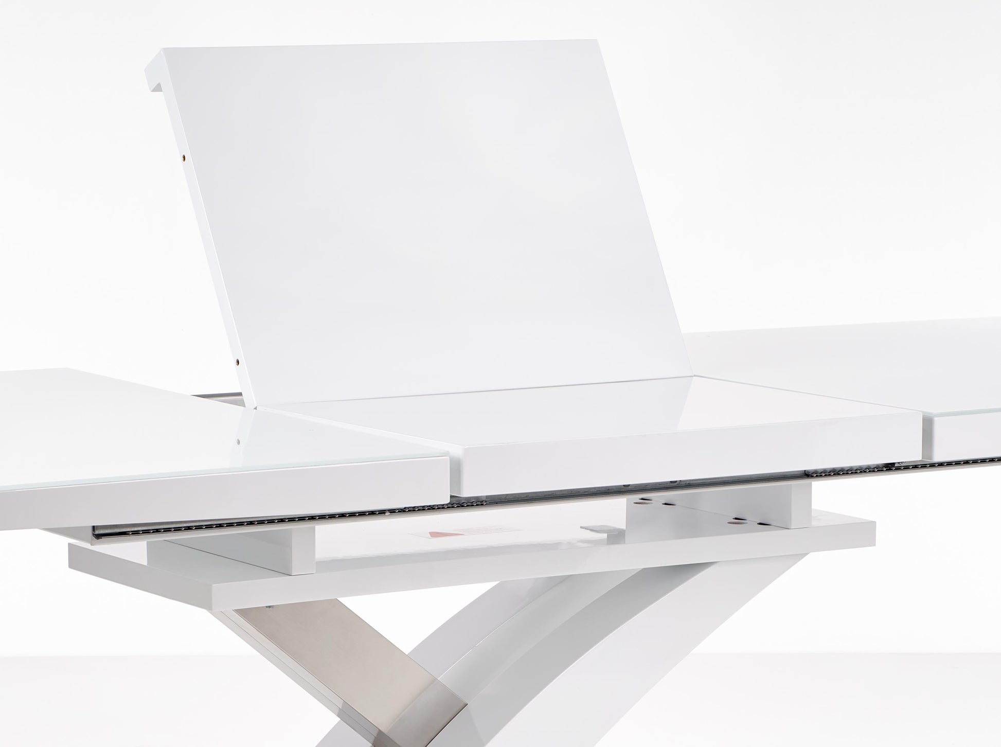 bővítőasztal, méretek: 160÷220/90/78 cm, anyaga: üveg / lakkozott MDF / rozsdamentes acél, szín: üveg - extra fehér, MDF - fehér