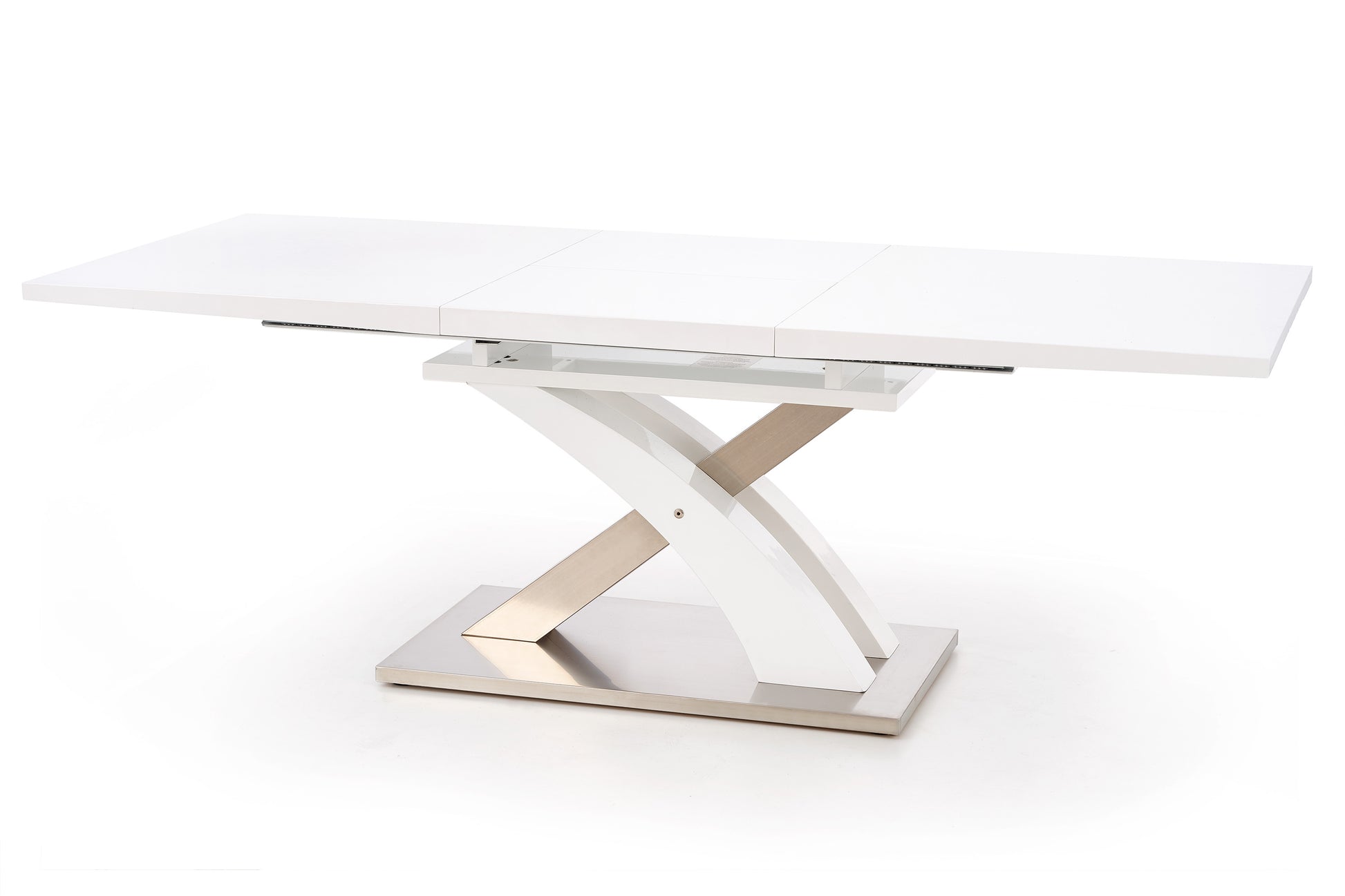 bővítőasztal méretei: 160÷220/90/75 cm, anyaga: lakkozott MDF / rozsdamentes acél, szín: fehér