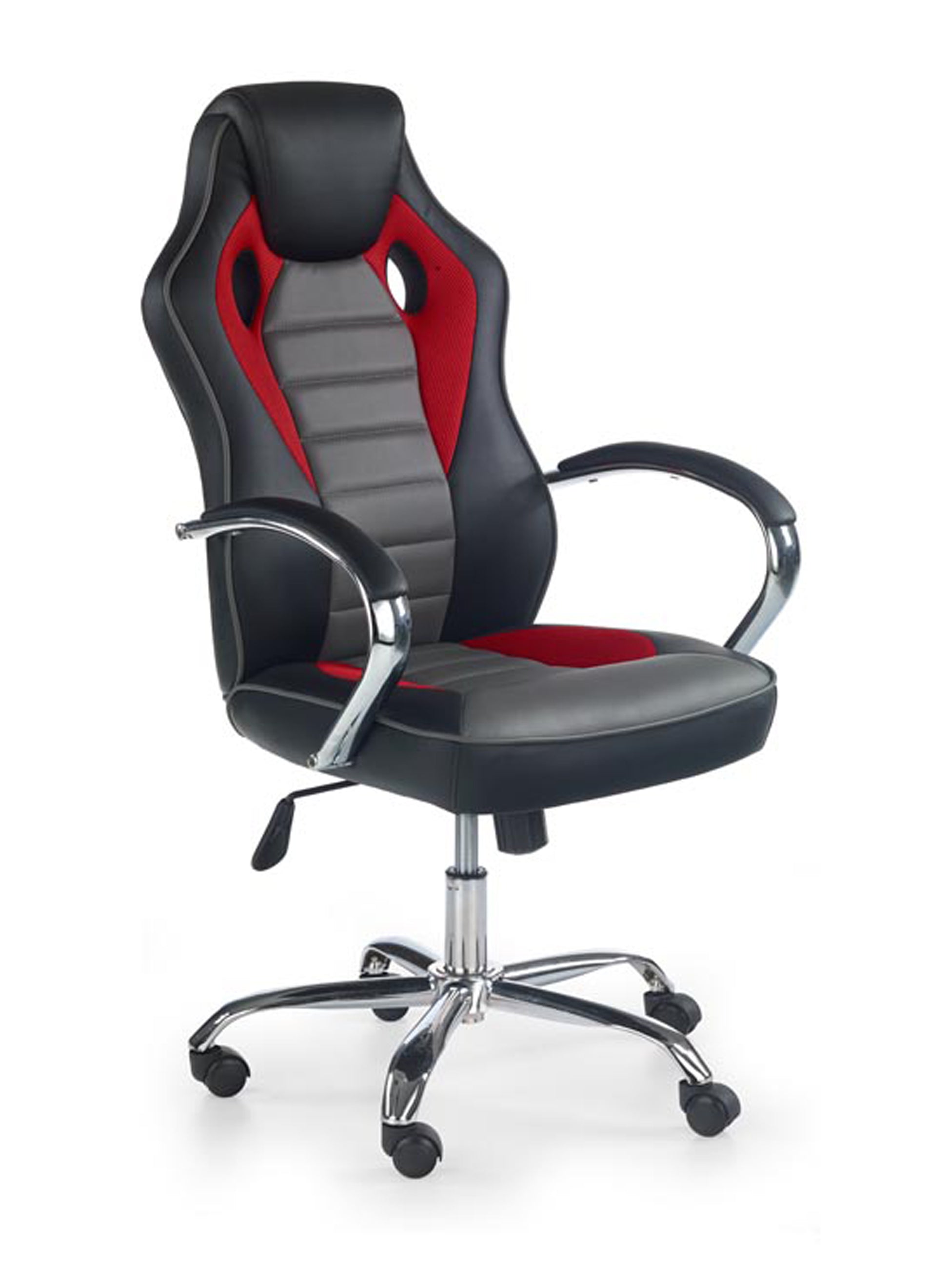 TILT mechanizmus, méretek: 61/48/109-119/43-53 cm, anyaga: öko bőr, szín: fekete / piros / szürke