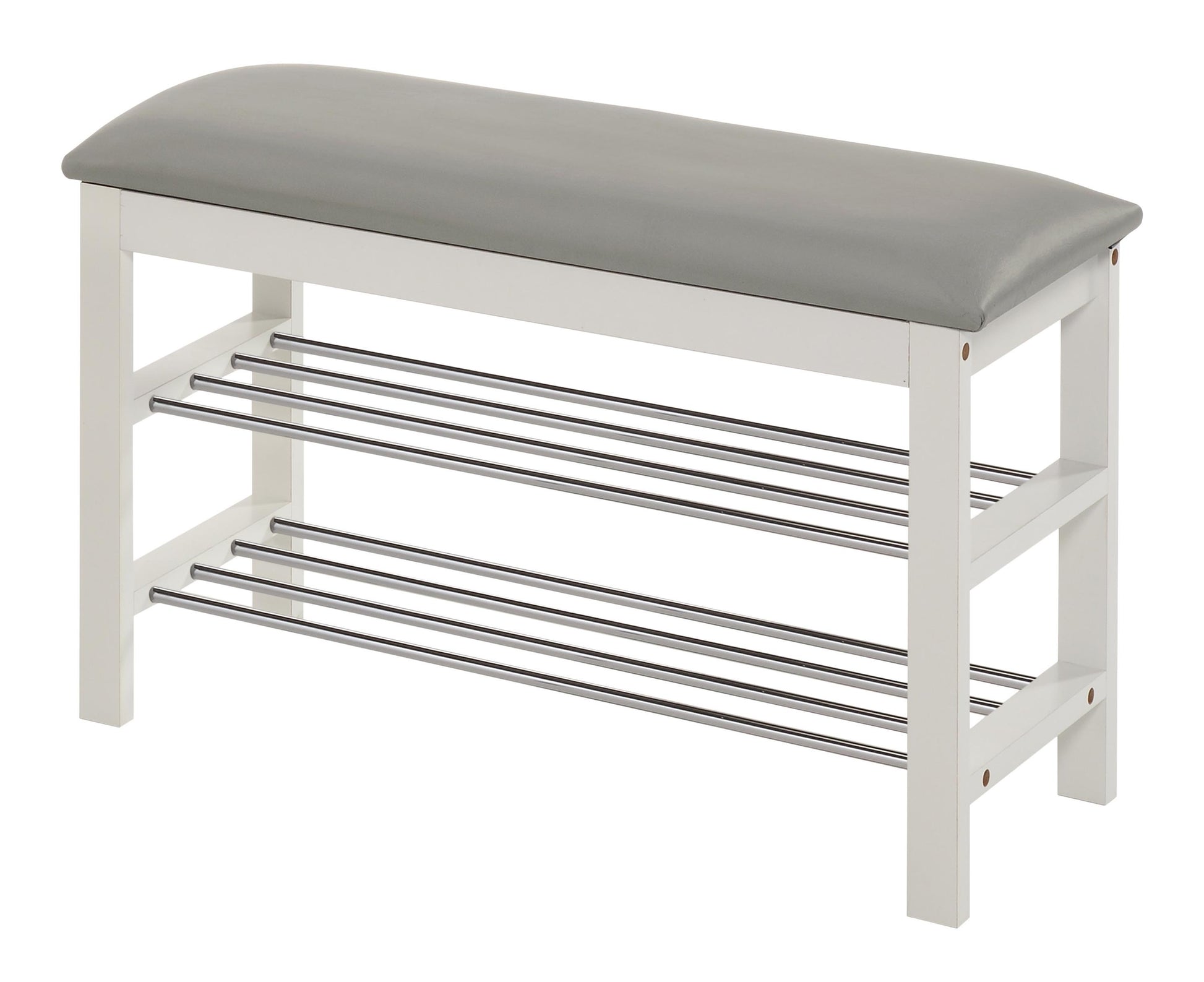 méretek: 81/31/48 cm, anyaga: MDF + natúr furnér / krómacél / öko bőr, szín: fa - fehér, kárpit - szürke