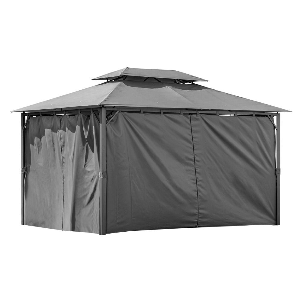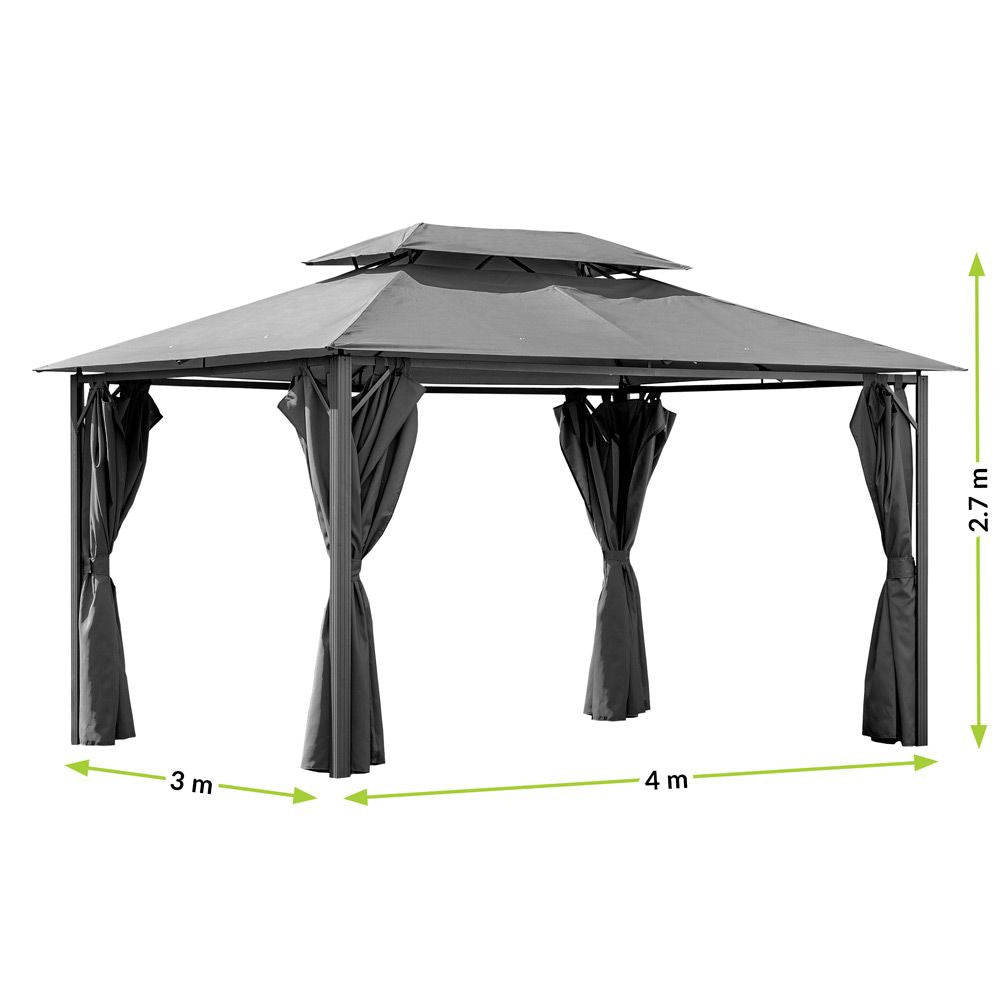 Egy 3x4 méteres nagyméretű kerti pavilon ajánlat mindenkinek, aki divatosan és funkcionálisan szeretné megóvni a pihenőteret a kertben vagy a teraszon . Az elegáns grafit sátor tökéletesen illeszkedik a modern elrendezésekbe . A tolófalak optimálisan az Ön igényeihez igazíthatók . Több pavilon egymás mellé helyezésével egy nagy fedett teret alakíthatunk ki, amely ideális például nagyobb csoportos bulikra, találkozókra. A pihenőhely tetőfedése hatékony védelmet nyújt a túlzott napsütés vagy a gyengéd nyári eső ellen.