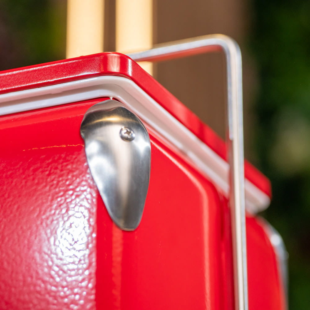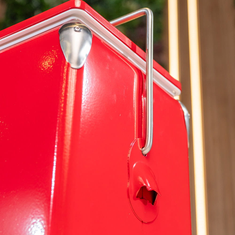Az egyedülálló retro dizájn a masszív acélszerkezettel kombinálva a terméket minden kirándulás nélkülözhetetlen kellékévé teszi. A hűtődoboz a megbízhatóságot és a stílust ötvözi. Tökéletes utazáshoz és kempingezéshez. Acélból készült, és a porfestési technológiának köszönhetően feltűnő piros színű. Ez nem csak egy stílusos kiegészítő, hanem egy tartós megoldás is, amely megfelel az utazó igényeinek .