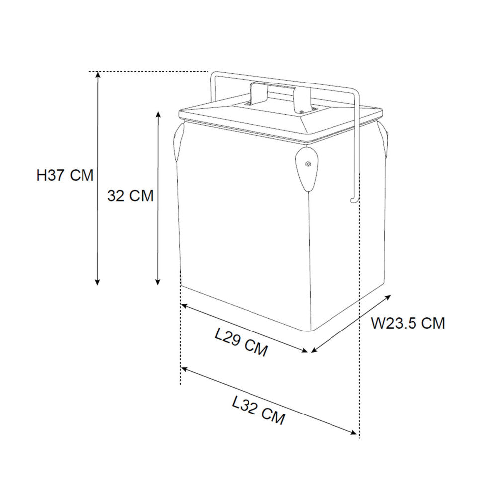 A termék  masszív rozsdamentes acél fogantyúval van felszerelve. Ez nem csak megkönnyíti a szállítást, hanem egy zárral is rendelkezik, amely megvédi a váratlan kinyitástól. Ezenkívül praktikus sörnyitó található az oldalán, így az italok hűtésére és felszolgálására is alkalmas. A fehér műanyagból készült, 13 literes belső tartály lehetővé teszi a hűtött termékek biztonságos tárolását. A hűtőláda maximális terhelhetősége 15 kg, így ideális friss harapnivalók és italok tárolására.