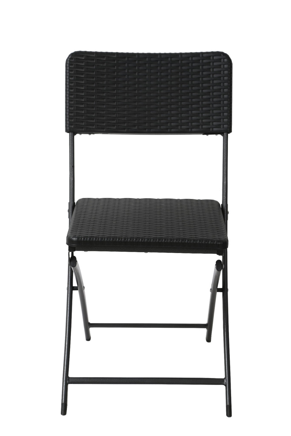 Az összecsukható Vivid szék ülőfelülete rattan hatású polietilénből készült, fekete színben.  A kerti szék váza acélcsövekből készült. A felhasznált anyagoknak köszönhetően az összecsukható szék könnyen mozgatható bárhová.