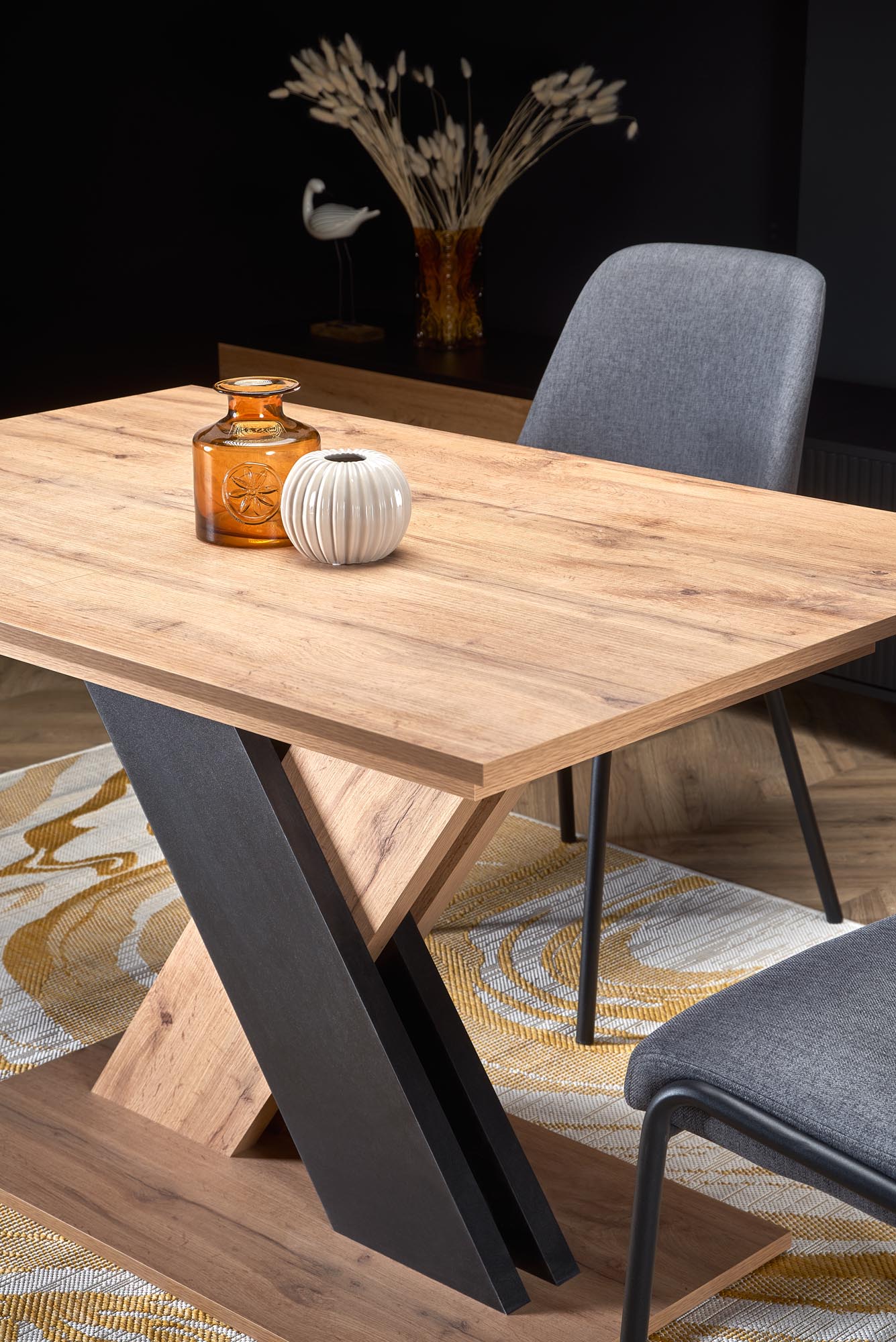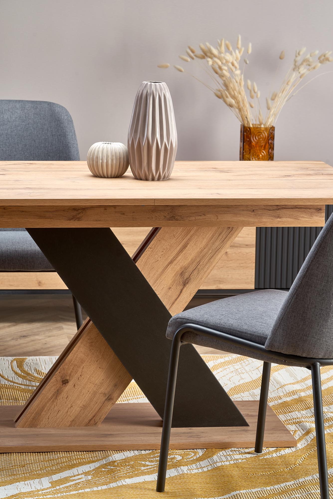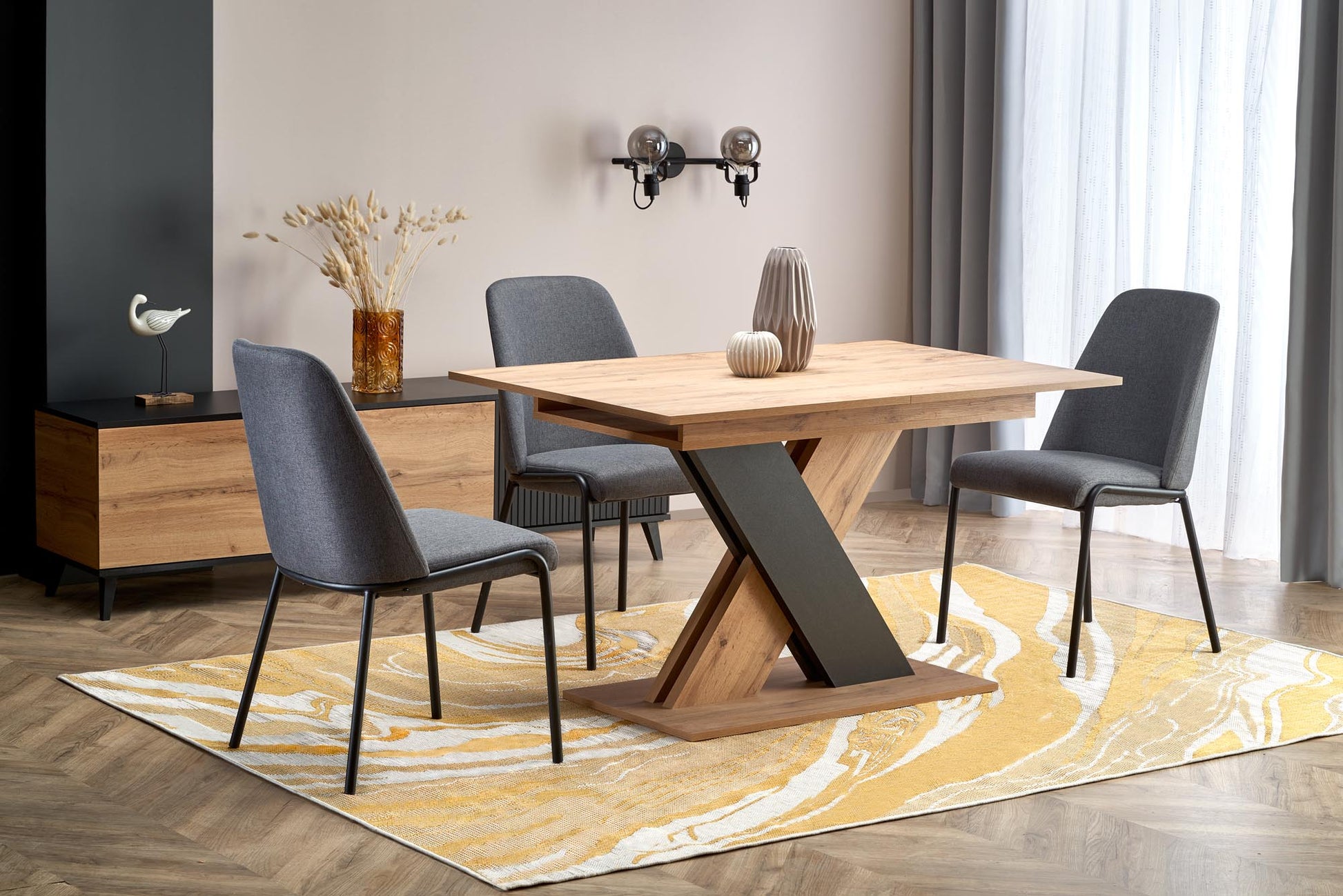 méretek: 130-175/85/76 cm, bővítőasztal, anyaga: laminált forgácslap, szín: wotan tölgy / fekete